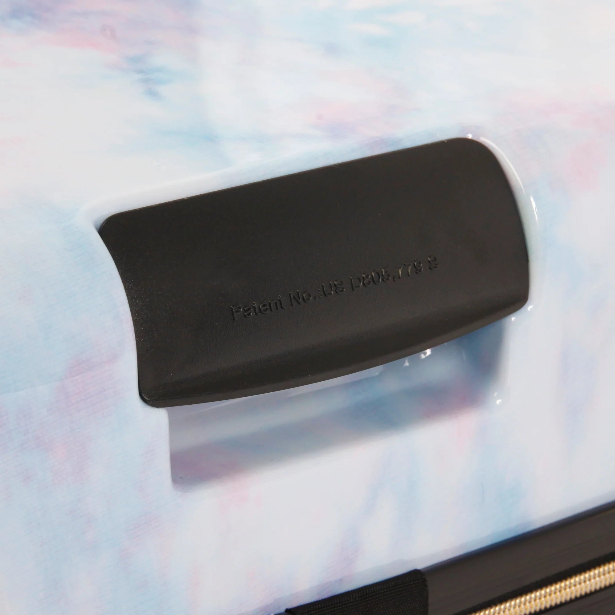 Enhance your travel game with the fabulous Sadie 3-pc set by Juicy Couture. Dual-spinner wheels, a retractable push-button handle, and a durable, hard side exterior. Ideal mix of glamour and fashion, for stylish travelers looking to make a fashion statement.