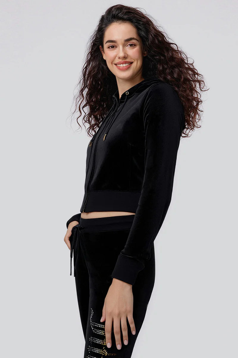 Celebrate 30 years of iconic glam with our Juicy Couture Birthday Hoodie — a throwback to Y2K magic with a modern sparkle. This luxe velour hoodie shines bright with ombré rhinestones glistening along the hood and a bedazzled “J” zip pull that’s pure Juicy nostalgia.