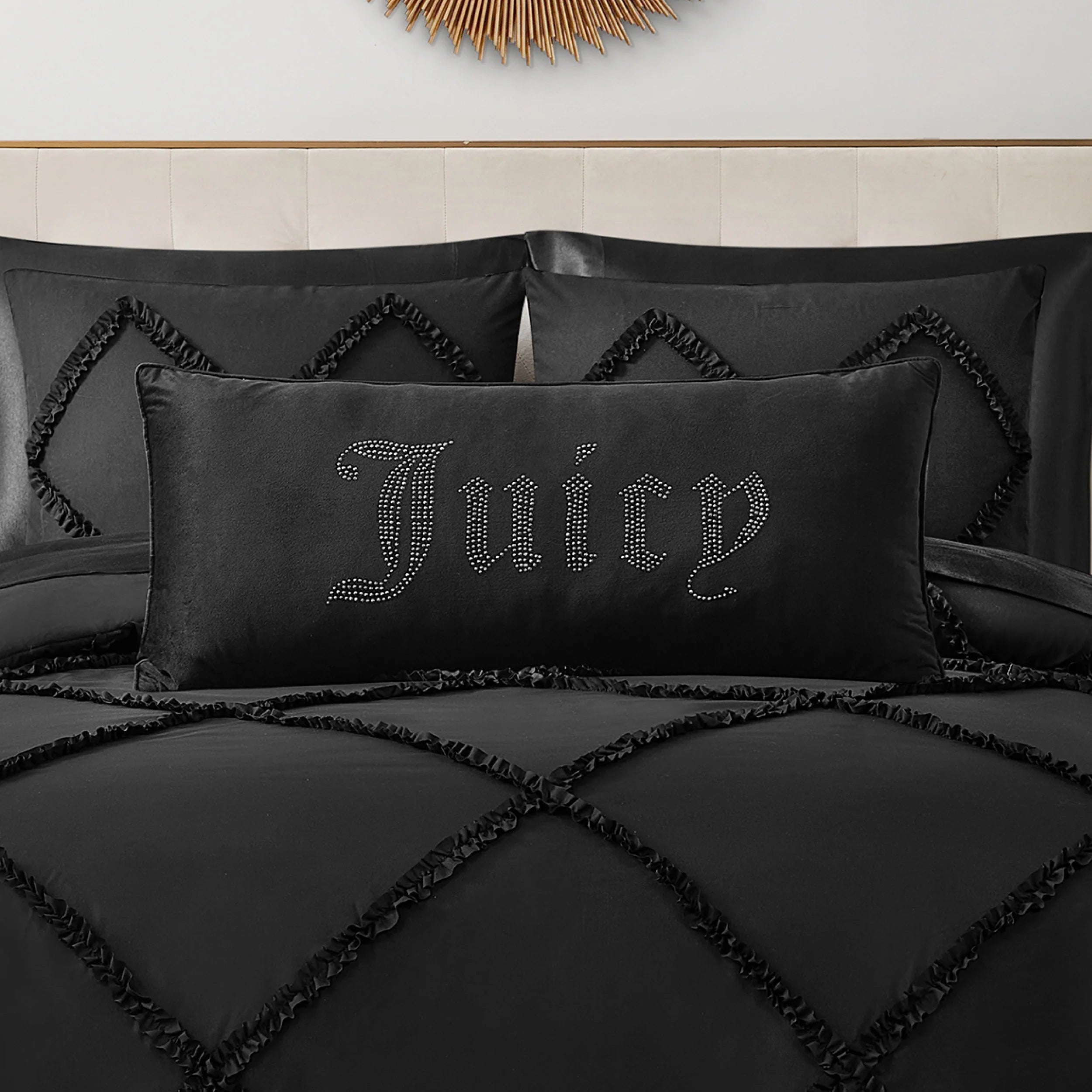 For a pillow that shimmers and shines as bright as you, look no further than the Juicy Big Bling decorative pillow. This soft pillow features the Juicy Couture logo in gothic letters using sparkly rhinestones against black velvet.