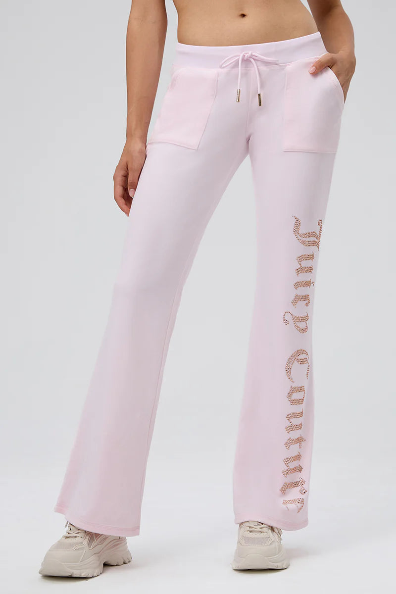 Shine from every angle in the Juicy Couture 30th Birthday Track Pant. Made from plush velour, this iconic style features snap-back pockets and a dazzling rhinestone “Juicy Couture” graphic down the leg.