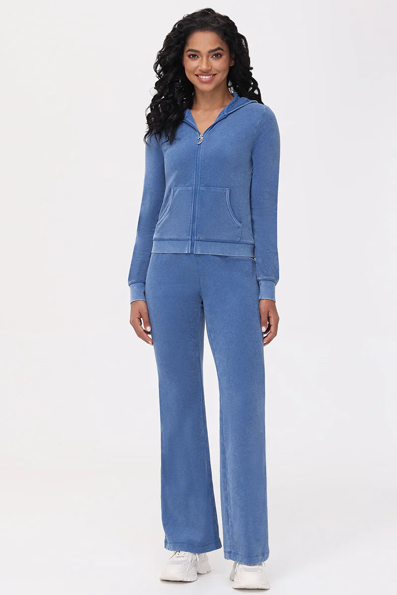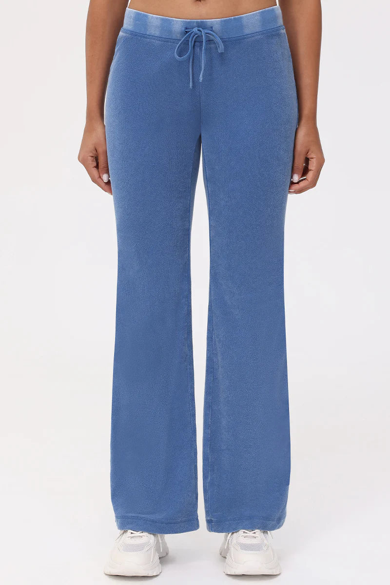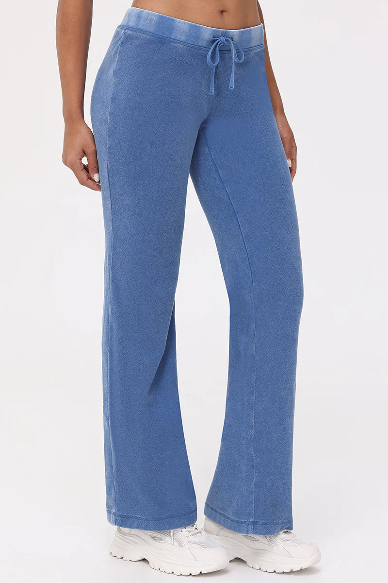 The perfect canvas, we've once again reinvented our essential track pant in washed towel terry. Finished with a drawstring elastic waistband and our iconic rhinestone logo. Say goodbye to pesky sand and hello to beach-chic style!