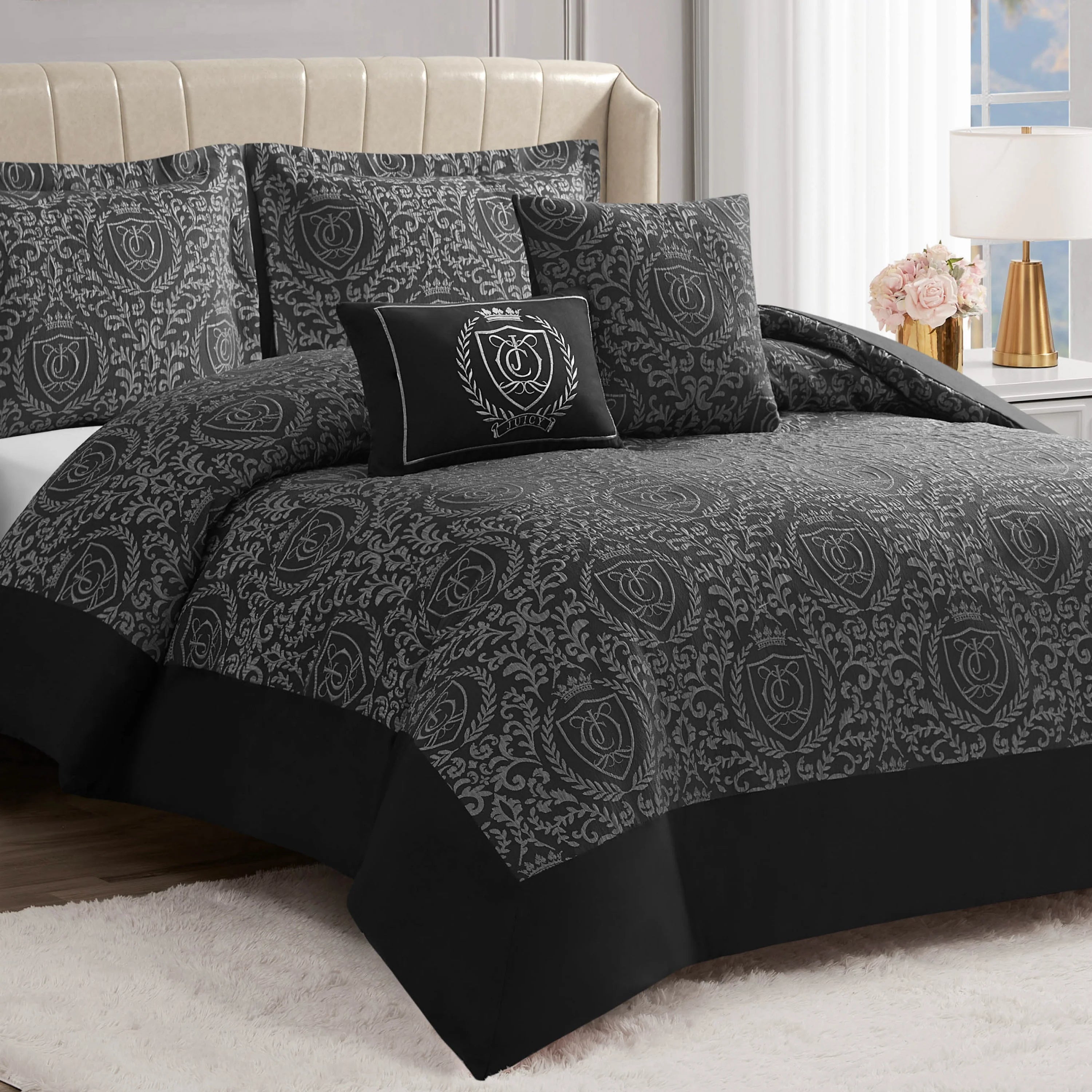 Elevate your bedroom with the bold glamour of the Juicy Couture Dovona Comforter Set. The Dovona bedding set brings runway-inspired flair to your everyday sleep space. Perfect for those who love to express their style—even in their dreams.