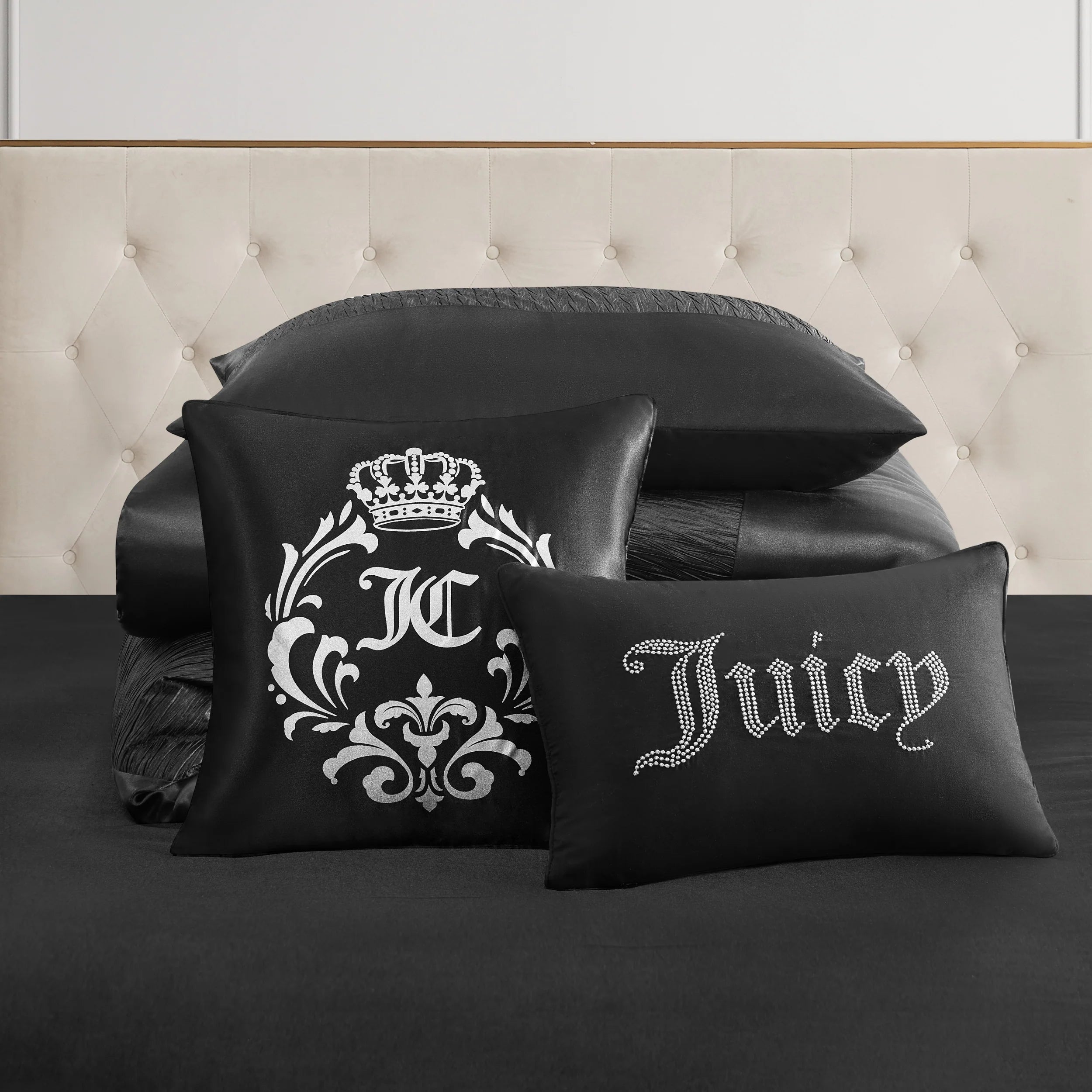 Want the kind of bedroom dreams are made of? Up the elegance and sophistication of your space with this sumptuous comforter set. With intricate details, black satin cording, and silver Juicy emblems, it's the epitome of romance.