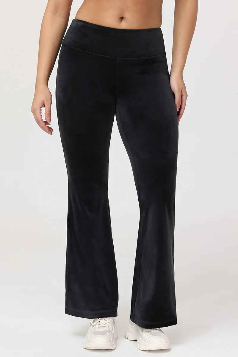 Slip into signature Juicy style with these luxe velour flare pants, featuring a dazzling rhinestone JUICY logo...