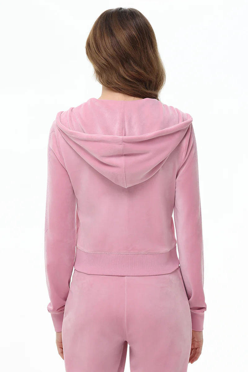With lace-like tonal rhinestones on your sleeve, this velour jacket features our iconic "J" pull zipper and...