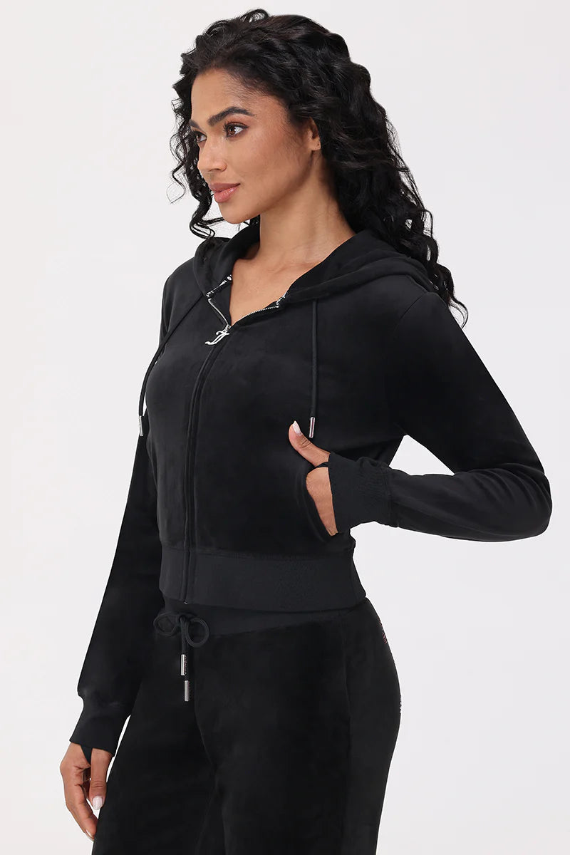 Returning to the roots of the brand, this slightly cropped hoodie features a monogram bedazzled 'JC' logo to front side chest and finished with the original 'J' zip pull for an authentic nod to the past.
