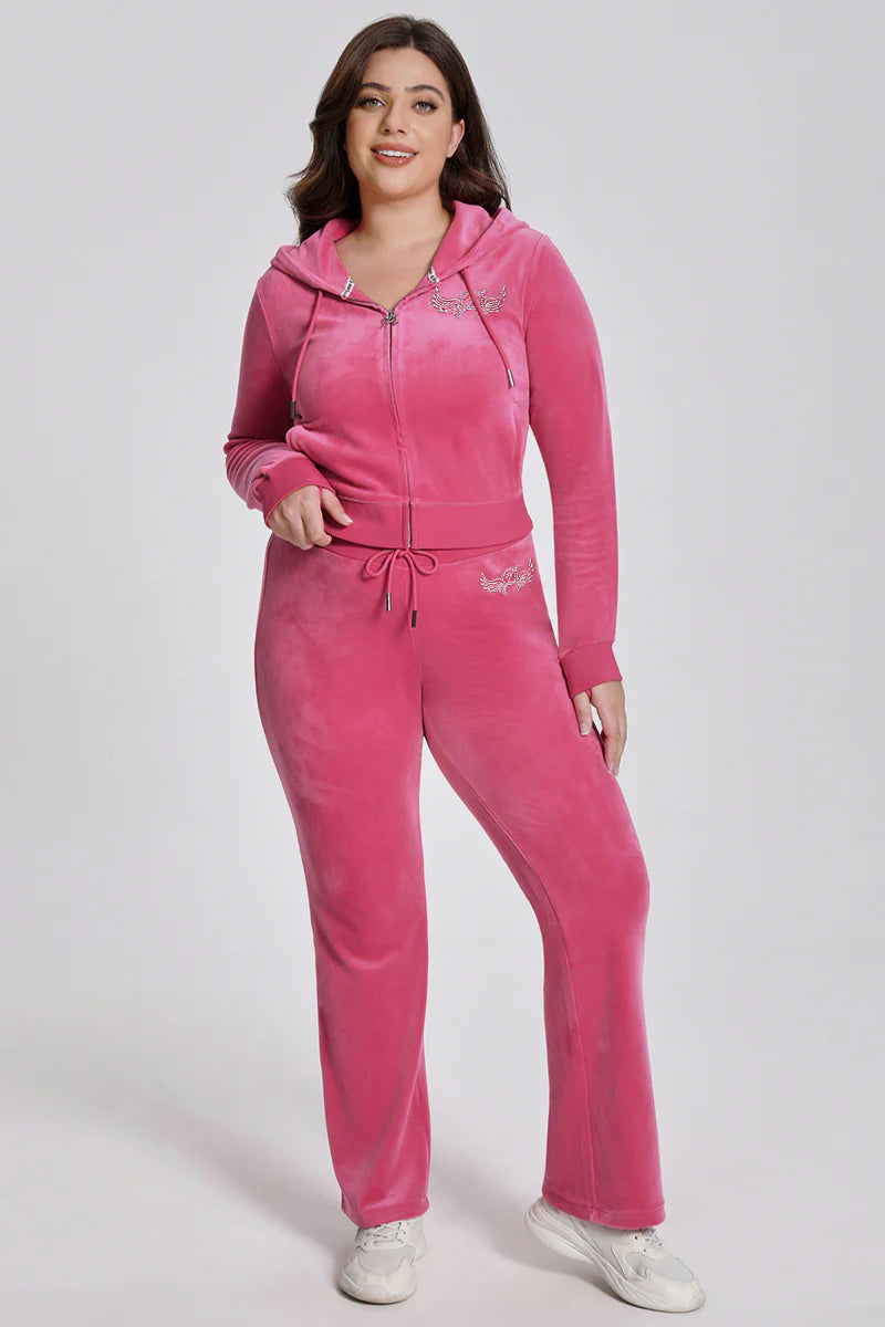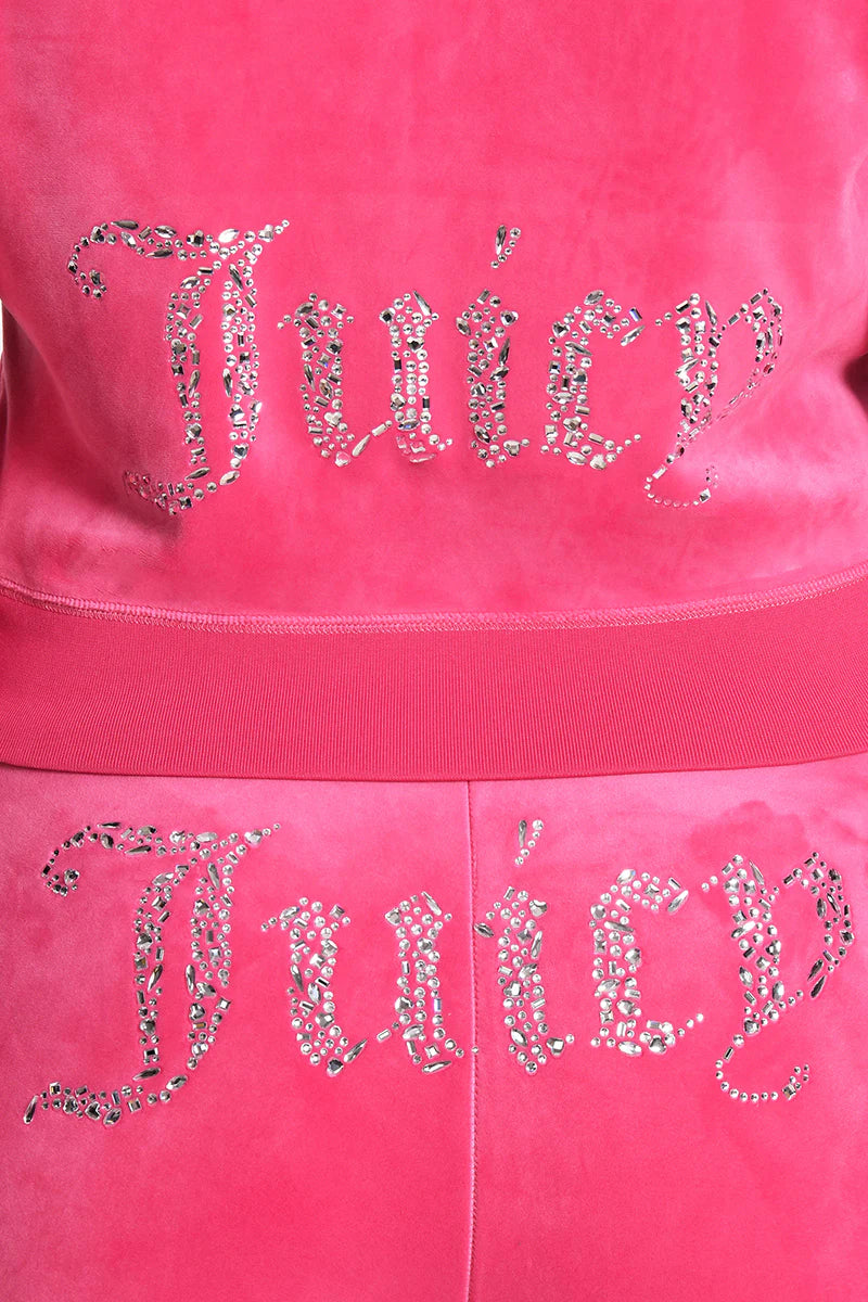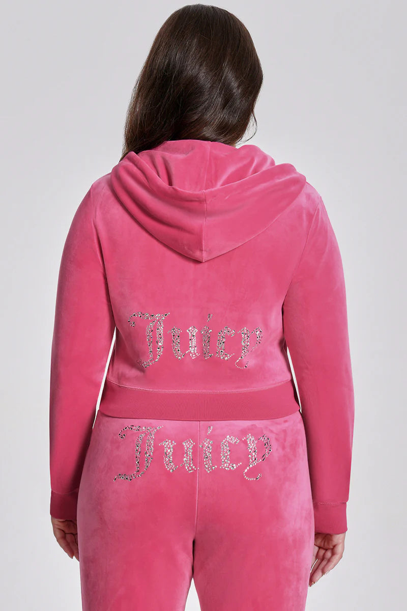 Juicy teams up with Angel Reese for a glam Y2K revival. This special-edition luxe velour hoodie brings the sparkle with a dazzling winged “A” in mixed crystals on the front and our iconic rhinestone logo on the back. Finished with an "A" zipper pull, thumbholes and side pockets to keep that OG Juicy vibe alive.