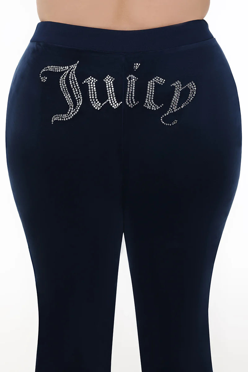 Our iconic Y2K Juicy embellishment brands the back of these velour pants and gives them a luxe twist. Set the vibe by pairing it with your choice of jacket, tank, or statement tee.