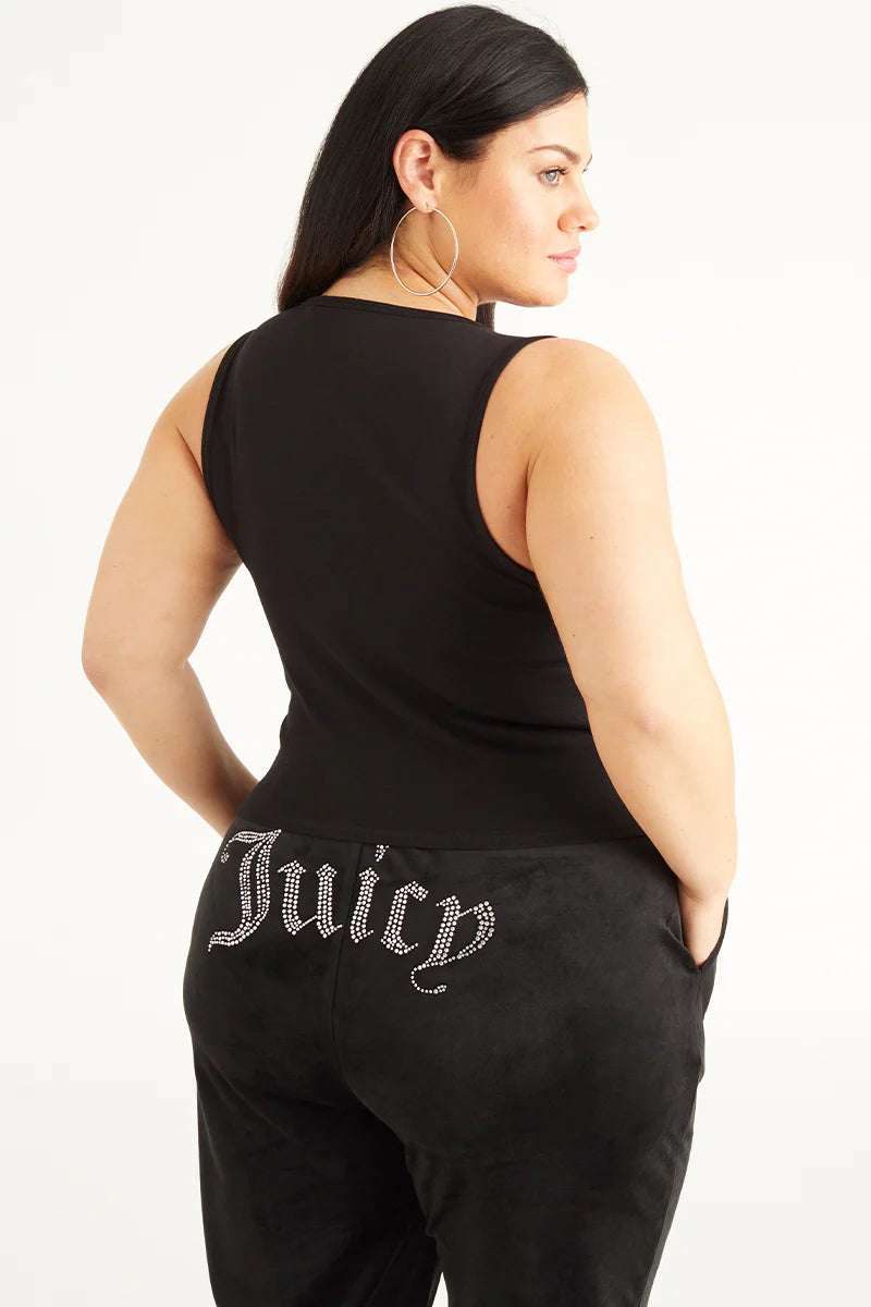 Our gorgeous U-neck tank features our iconic logo blinged out for a bit of extra glam. It's the ideal layering piece to go under any Juicy tracksuit or as a stand-alone piece.