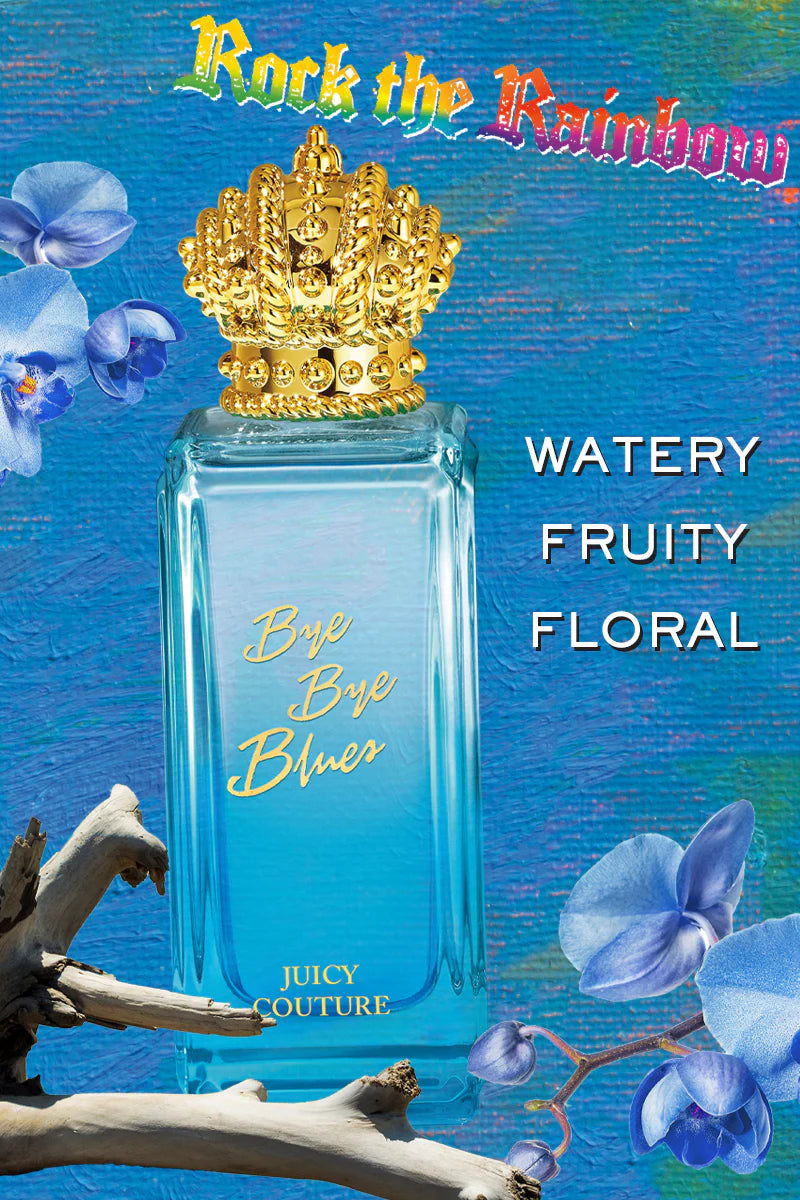 For the beachy blue surfer who is creative and carefree, with a bright and breezy sense of style. This floral fruity watery fragrance melts away your worries opening with a burst of waterfall mist, sparkling lemon, and water fruits. A bouquet of blue flowers at the heart centers this refreshing scent with dreamy bluebell, blue orchid, and lotus florals. Warmed in the glow of amber, sleek driftwood, and crystal musk at the finish, this is a scent to make you smile. The Juicy Couture girl lives life in vivid color, defying the rules and twisting the trends. She follows her own brilliant path to the end of the rainbow as she stirs up an irresistible new fragrance vision. Rock the Rainbow by Juicy Couture.