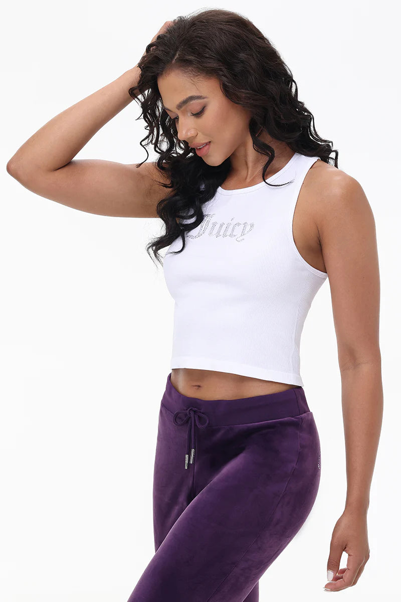 Introducing our cropped tank with a high neck in our new seamless fabric. Perfect for casual or gym wear. And check out that rhinestone logo! You'll be sparkling in style.