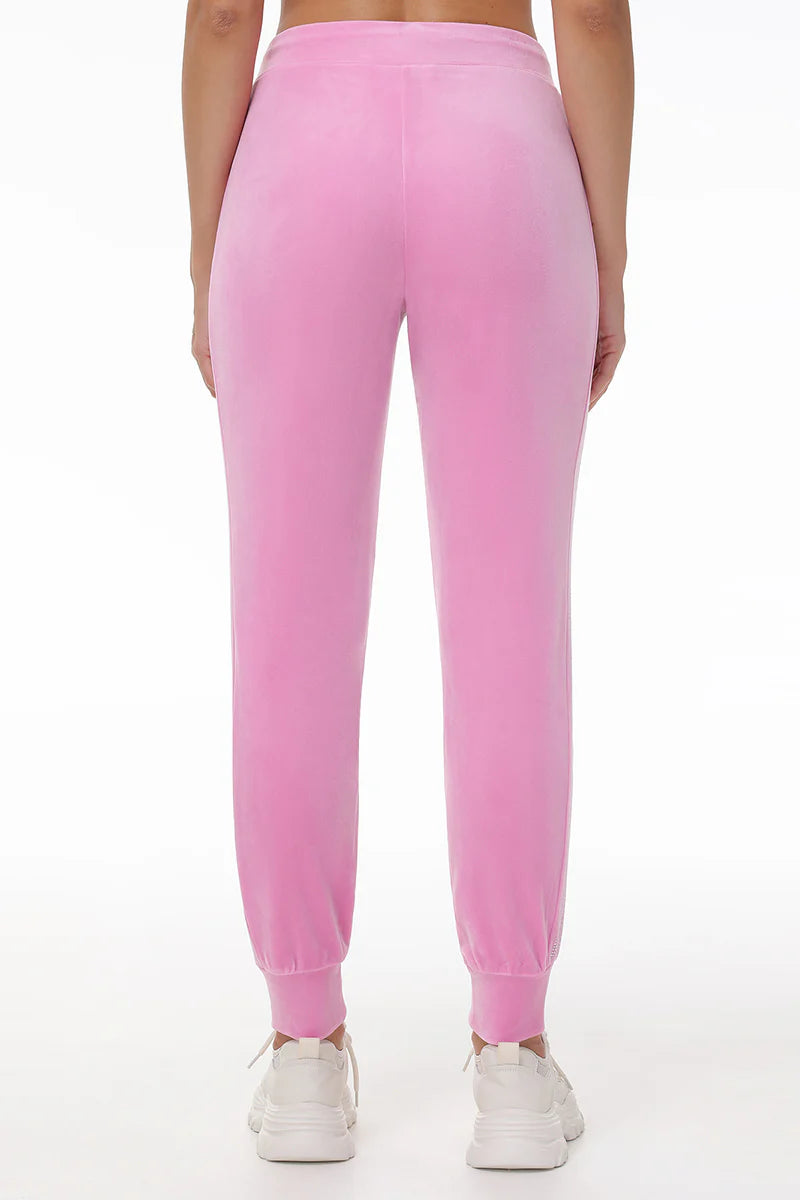 The brand's logo blocks out in rhinestones on the side legs brings glamour to our classic jogger.