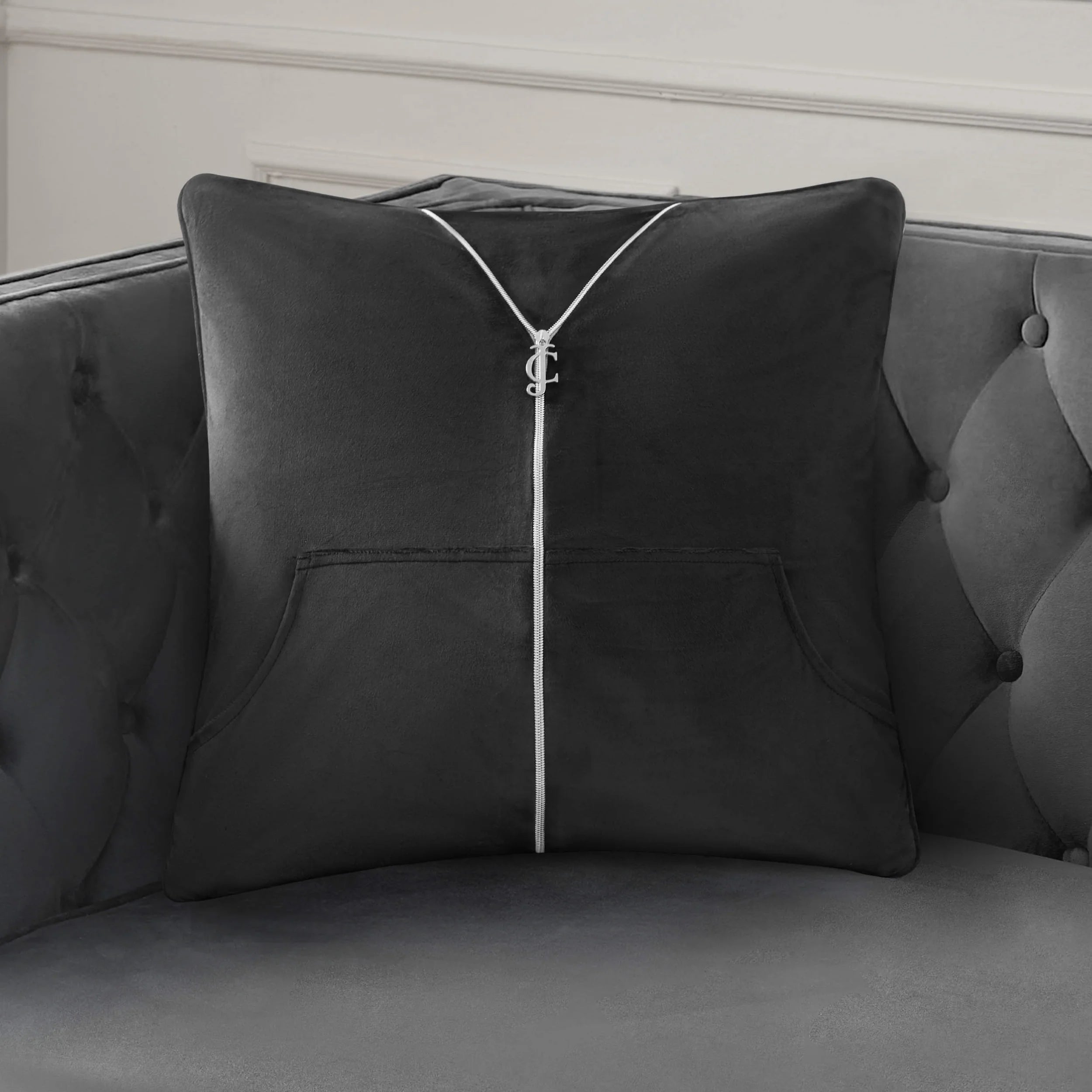 Bring the iconic Juicy look to your home with the Juicy Couture Tracksuit decorative pillow. The vibrant velvet will add a pop of color that brightens any room. Keep your items close by with pockets included on the front. The fully functioning zipper features the iconic Juicy lock-up on the zipper pull.
