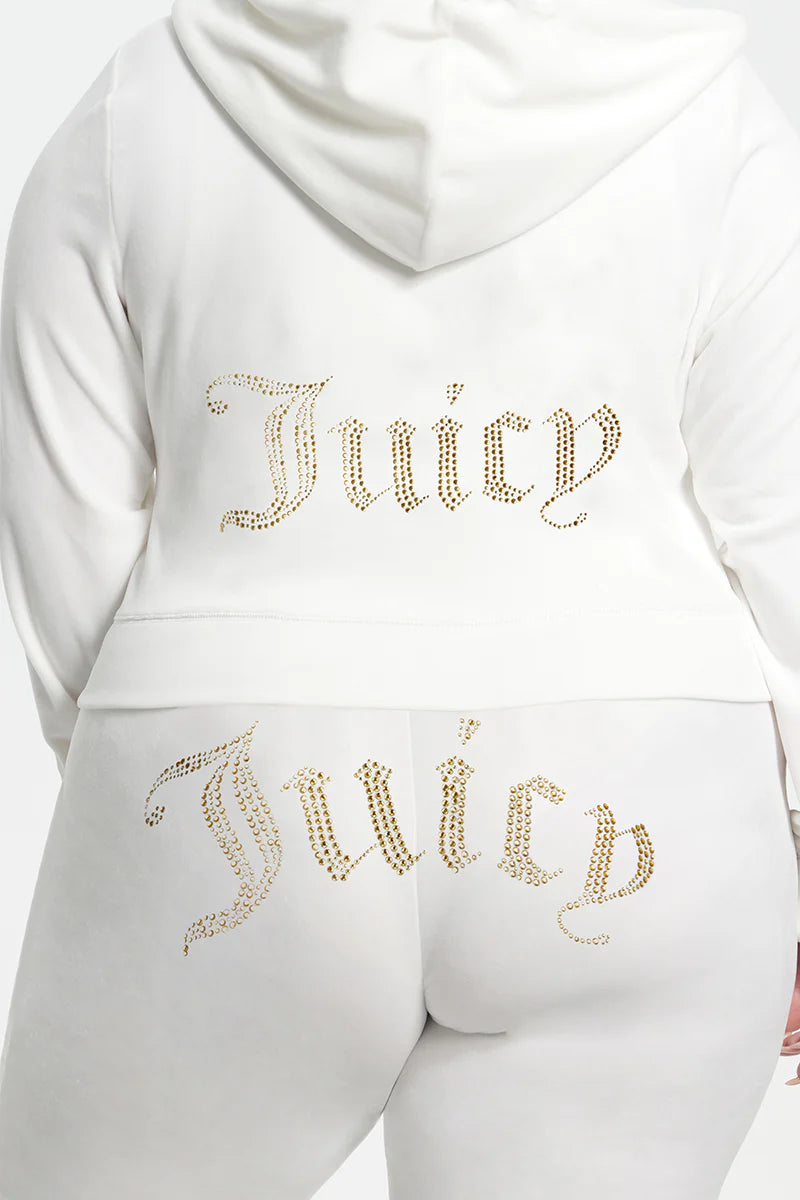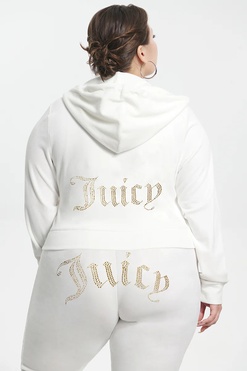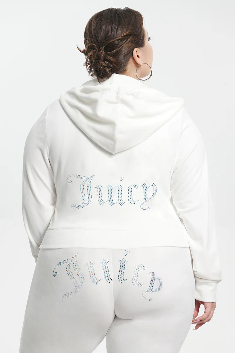 Wrap yourself in our reimagined Y2K hoodie. Made to order for each customer, bling out the back of your velour hoodie in the rhinestone of your choice.